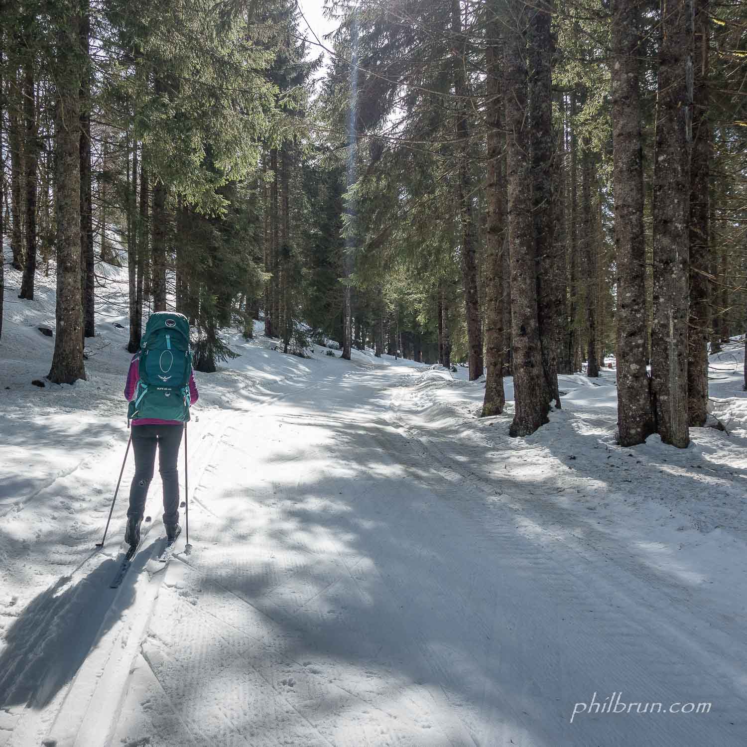 - Le matériel de ski de location, car certaines chaussures prenaient l’eau et avaient des semelles baladeuses ! Quant aux skis de fond avec un sac à dos, c’est particulièrement périlleux dans les descentes. Si c’était à refaire nous opterions plutôt pour des skis nordiques qui ont des carres et dont la tenue est meilleure avec un sac sur le dos.