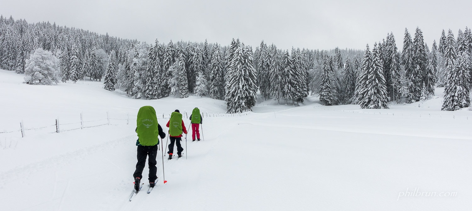 Cette année nous avons eu un très grand plaisir à parcourir la GTJ, la Grande Traversée du Jura à ski de fond durant la seconde semaine de mars 2017. Durant la préparation de notre périple, nous avions hésité entre, le faire en raquettes, ou en ski de fond. En fait, le choix c’est naturellement tourné vers les skis de fond car, ils permettent de parcourir une plus grande distance et donc de voir une plus grande diversité de paysage !