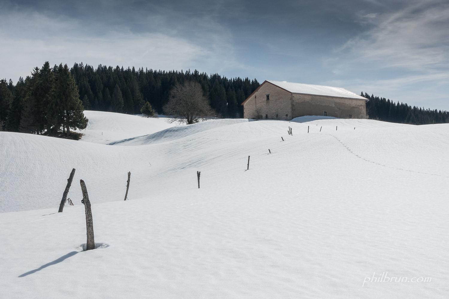 J’avais prévu une journée de repos aux Rousses. Mais finalement en ce jeudi matin, les jambes nous démangent et nous décidons d’aller faire le Rizoux. C’est la partie du parcours que nous n’avions pas pu faire la veille. En effet, nous apprenons que l’interdiction a été levée le matin (bien vue la journée off !). Le temps n’est pas des plus beaux, mais reste correct pour cette très jolie balade. Nous en profitons pour pique-niquer à mi-parcours bien à l’abri dans un petit refuge face à la maison du Ministre (ministre de quoi ? le mystère reste entier 🙂 ) .