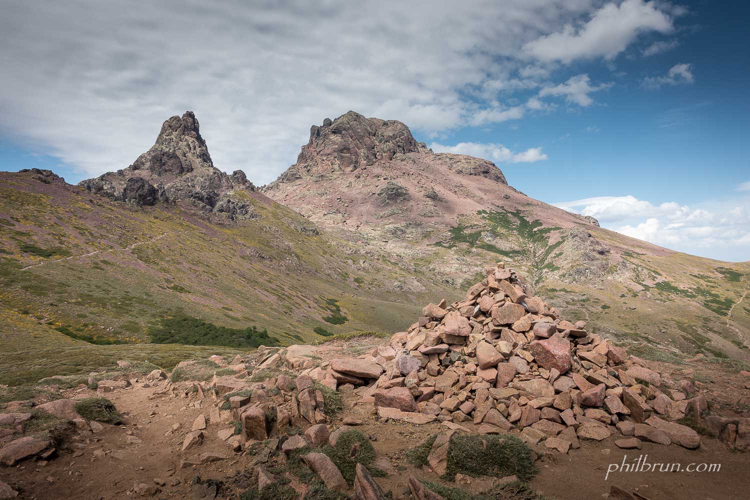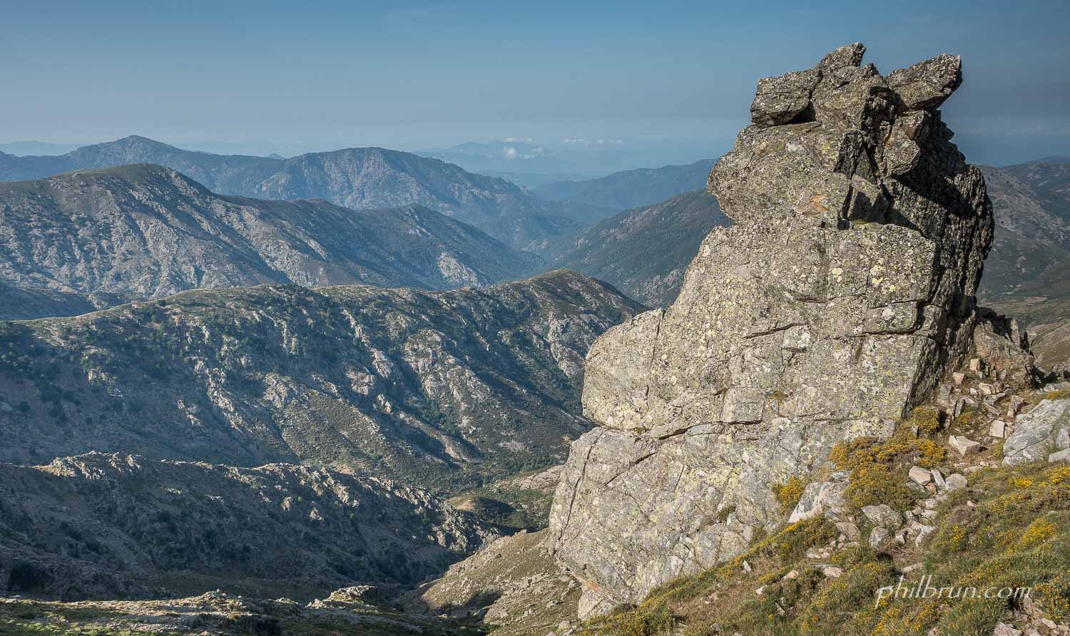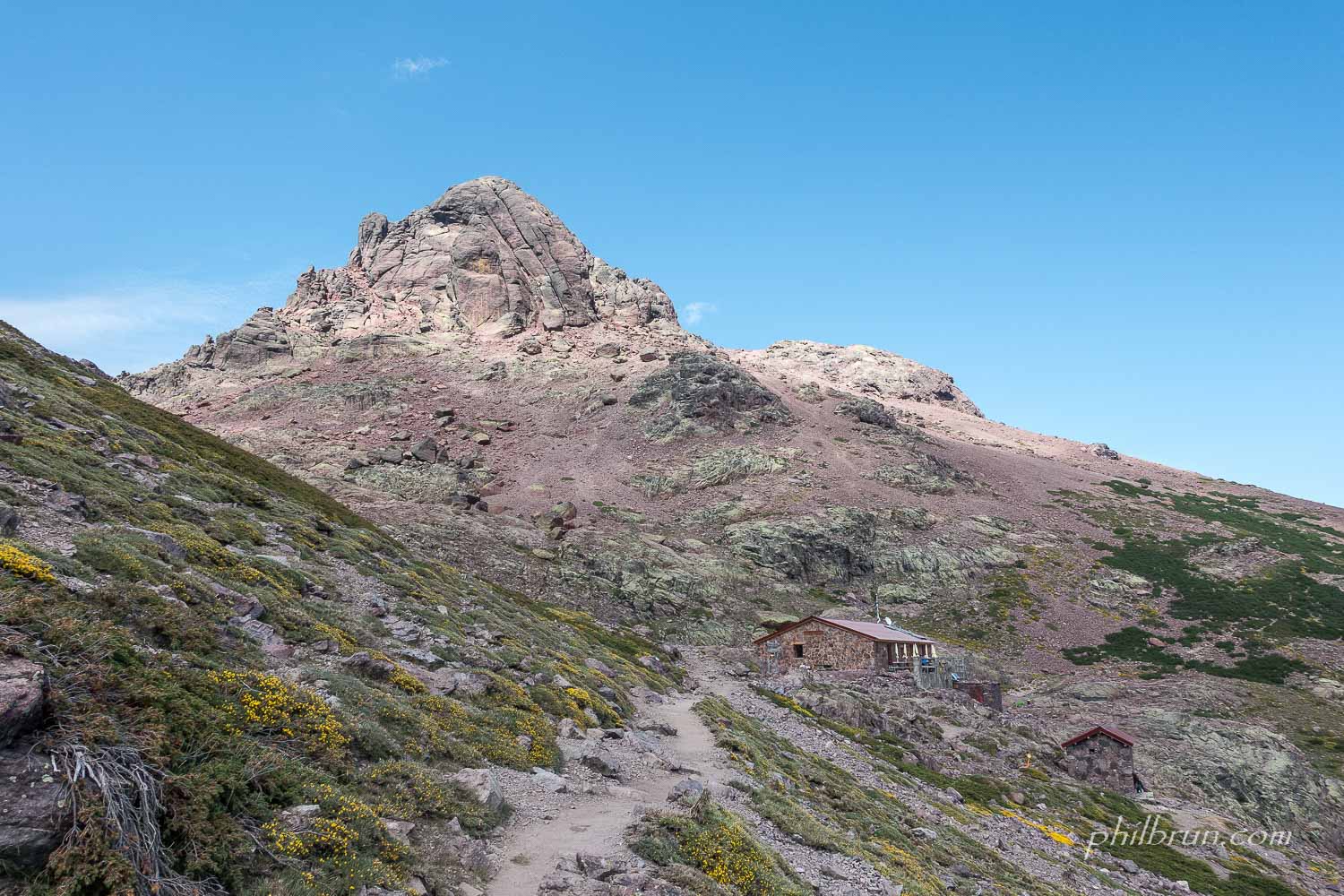 Fin mai, c’est une très belle période en Corse. La montagne est encore verte et les fleurs amènent de subtiles touches de couleurs. De plus la chaleur réveille la nature dans une émanation olfactive qui, rien que d’en parler, me fait sentir l’odeur si particulière du maquis Corse !