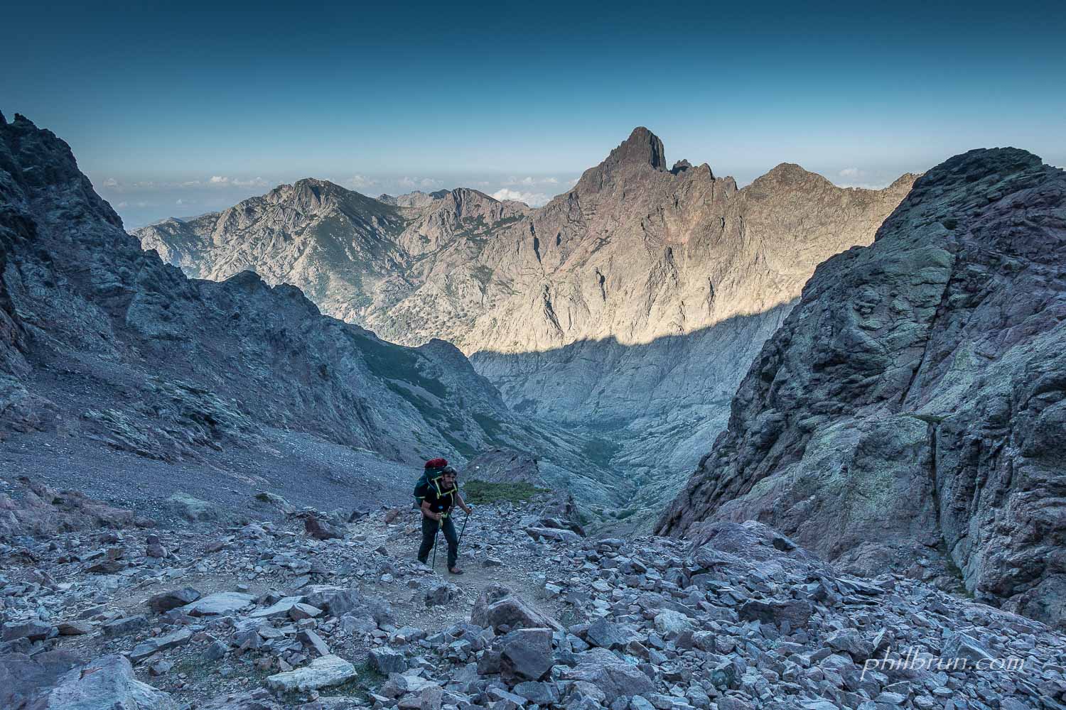 Oui, ce parcours est magnifique et oui, je suis heureux de l’avoir réalisé. Il est physique à n’en pas douter et une bonne condition, voir un entrainement spécifique, peut permettre de l’apprécier plus intensément. Pour pouvoir le faire dans de bonnes conditions, il faut être capable de marcher sur des cailloux (car les sentiers sont plus que rares en Corse) avec un sac chargé (12 à 18kg) et ce pendant 6 à 12h en fonction des étapes (simple ou double) et des variantes ou sommets réalisés, le tout avec un dénivelé de plus de 1000 mètres par jour. D’après les locaux rencontrés, il n’y aurait que 30% des randonneurs qui termineraient le parcours complet…