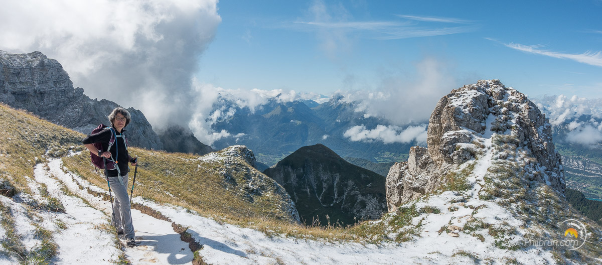 Là, les choses se compliquent avec le franchissement des barres rocheuses. Oui, il faut parfois mettre les mains. Mais au fur et à mesure de l’ascension, le paysage du lac d’Annecy et des environs se dévoile avec majesté !