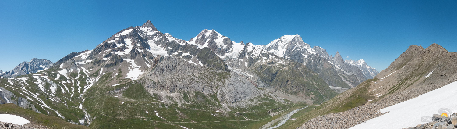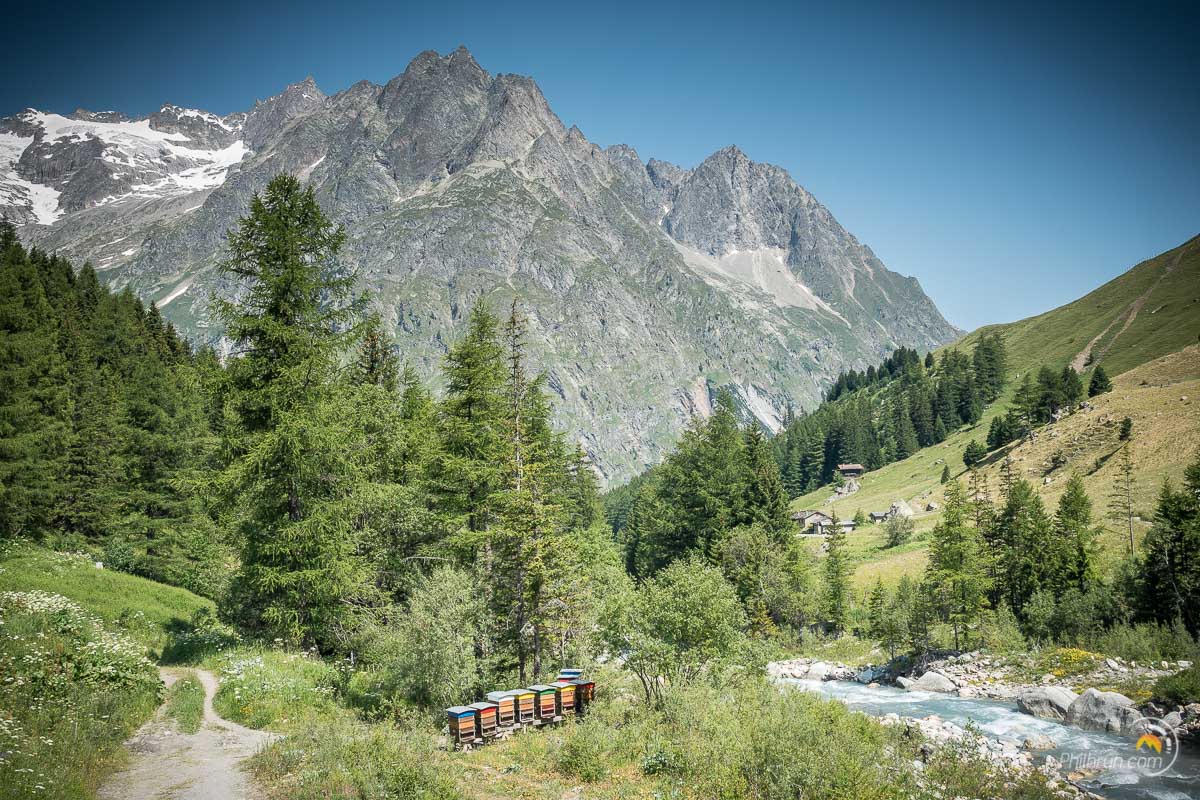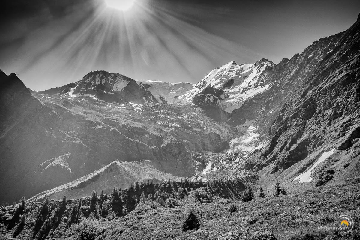 En effet, chacune des faces de ce massif offre des perspectives et des lumières à nulle autre pareil. Le versant Italien ou Suisse n’ayant absolument rien à envier au Français. Le parcours évolue en permanence à la limite de la haute montagne avec ses glaciers et ses cimes blanches immaculées. Je l’aime tellement ce tour, que j’espère encore le refaire un jour prochain…