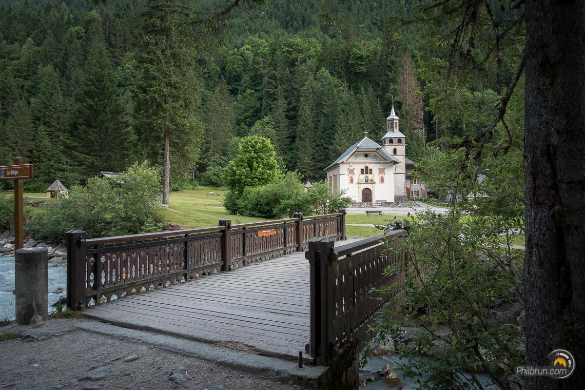 Enfin, nous arrivons au chalet du Glacier. Nous passons le pont de bois qui enjambe le torrent et entamons la remontée vers le col de Balme.