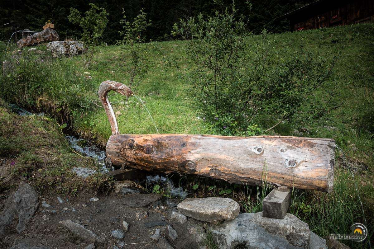 Nous sommes alors au cœur de la journée et la chaleur produit son effet, fatiguant les corps, chauffant les pieds et obligeant à boire régulièrement. Un petit arrêt dans un chalet buvette à mi pente, nous offre l’occasion d’une boisson fraîche qui est un pure ravissement.