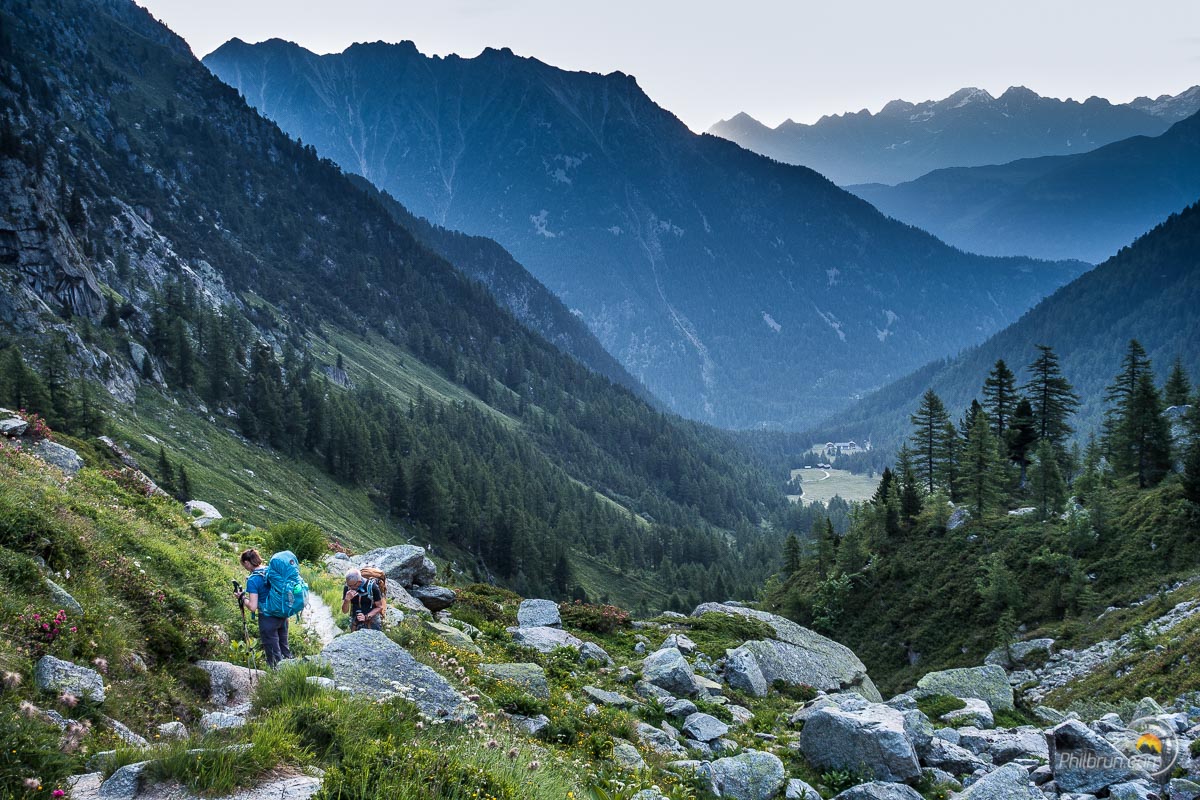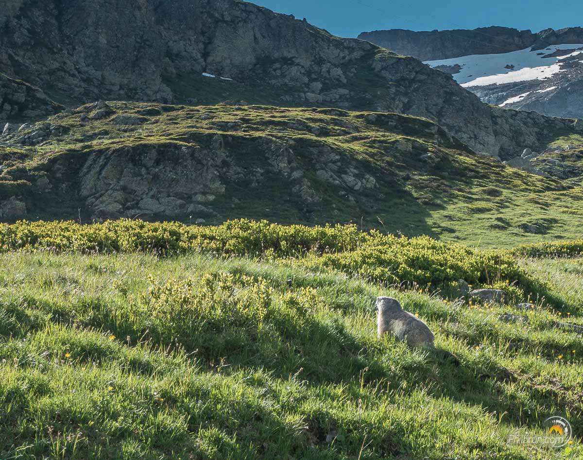 Au départ ce matin, le Val Veni nous offre de belles lumières embrumées. Le paysage, pour la descente qui commence, est superbe et les marmottes nous saluent au passage.