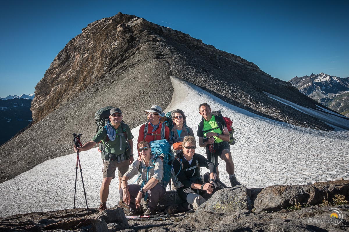 Nous réalisons que nous y sommes enfin, sur ce tour auquel nous pensions depuis l’hiver dernier. La météo est au beau fixe, avec de la chaleur en prime. Cette semaine là sera exceptionnelle au niveau du climat. C’était une période de canicule en vallée et nous avions très chaud en altitude. Des températures inhabituelles, à n’en pas douter ! Mais ce fut pour nous, un vrai régal 👍