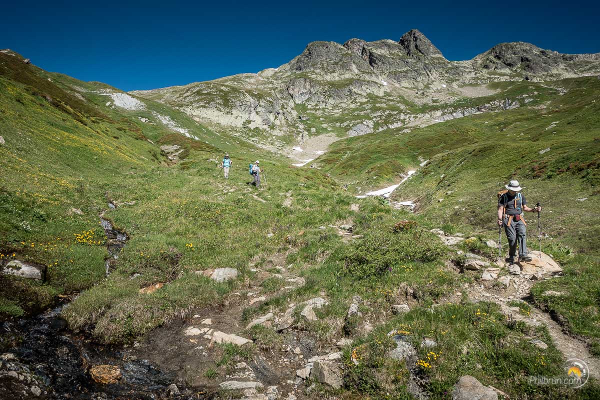 Une bonne période à mon sens, se situe entre fin juin et début juillet. Ceci, car en début de saison la nature se réveille, les paysages sont fleuris et l’eau de fonte ruisselle partout, offrant ainsi plein de possibilités d’approvisionnement en eau. La période la plus fréquentée sur ce tour est du 14 juillet au 15 août. Il vaut donc mieux, autant que possible, l’éviter. Une autre bonne période est également de fin août à début septembre.