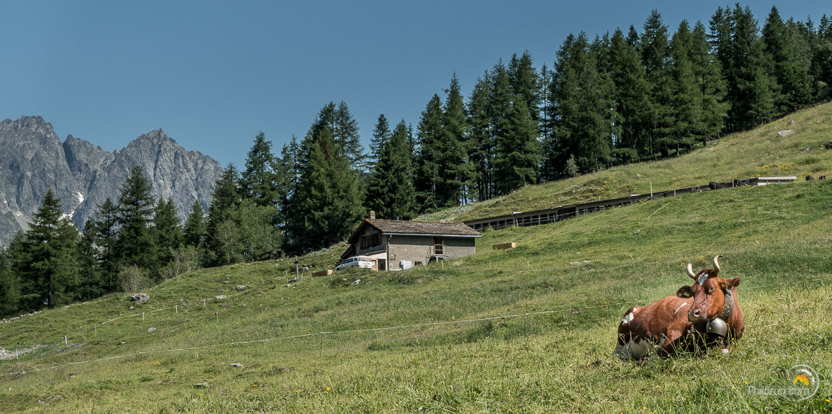 Après le fond de vallée, nous remontons un bon moment afin d’atteindre Plan Chécrouit. Lieu, où nous découvrons avec tristesse qu’il nous faudra descendre sur Courmayeur à pieds ! En effet, le téléphérique initialement prévu n’ouvrait pas avant encore deux semaines 😭. Attention donc dans votre préparation à vérifier les périodes d’ouverture de ce téléphérique (lien en pied d’article).