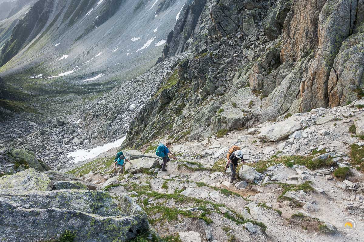Ces étapes nécessitent un entrainement préalable à la randonnée en montagne avec le port d’un sac à dos. La marche se fait principalement sur sentier, mais les dénivelés rencontrés sont parfois importants. Il n’y a par contre, aucune difficulté technique (sauf en cas de neige tardive). Deux passages, peuvent être délicats enneigés, la variante du col des Fours et la fenêtre de l’Arpette. Il vaudra alors mieux éviter de les faire si les conditions d’enneigement les rendent délicats. Les gardiens des refuges sauront vous renseigner sur la bonne option à prendre. Une autre étape présente des difficultés mineures, la montée au Lac Blanc qui se fait par endroit par des échelles. Il faut donc mieux que les randonneurs ne soient pas trop sensibles au vertige, même si ces passages ne présentent aucune difficulté technique.