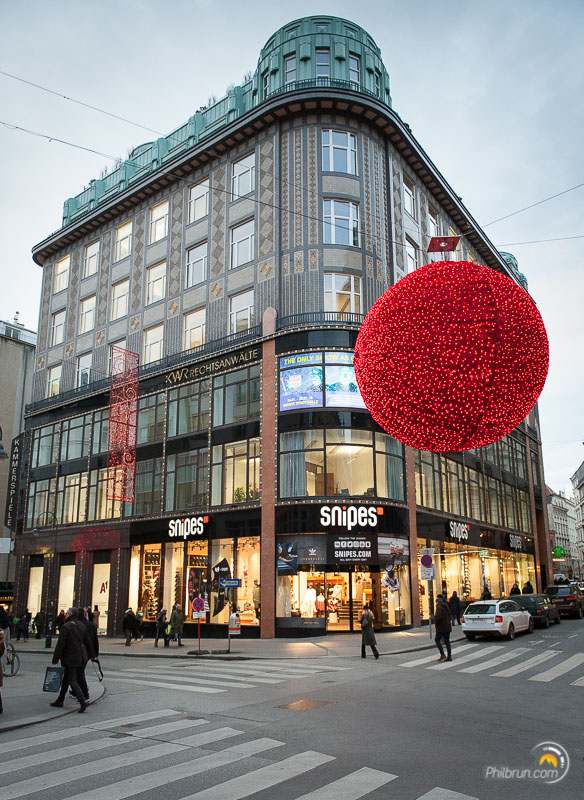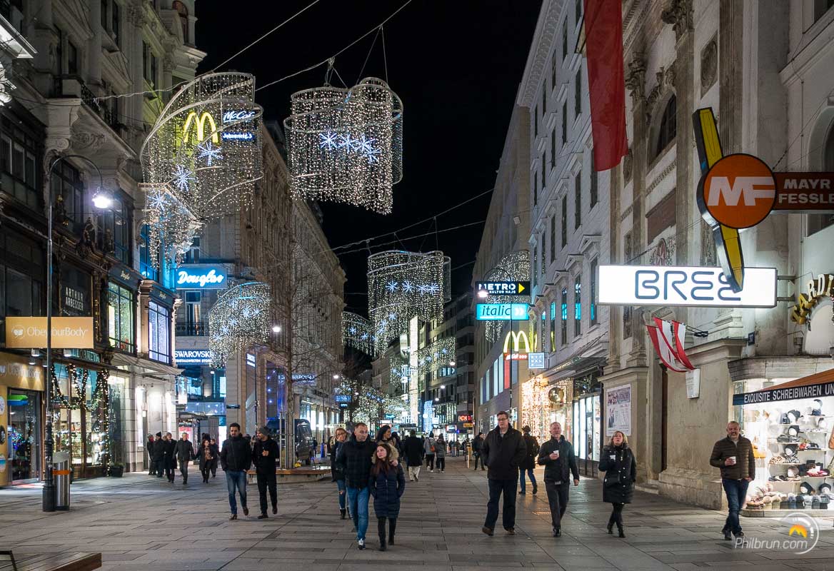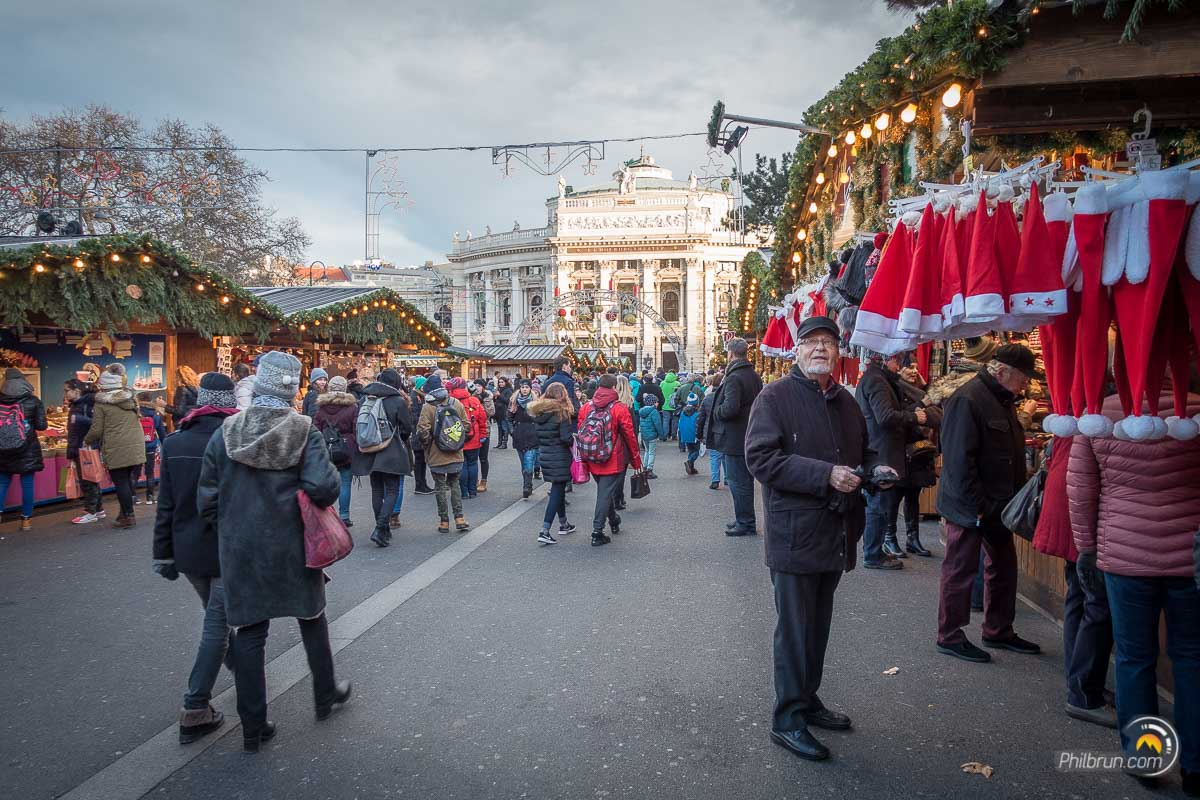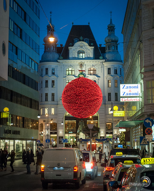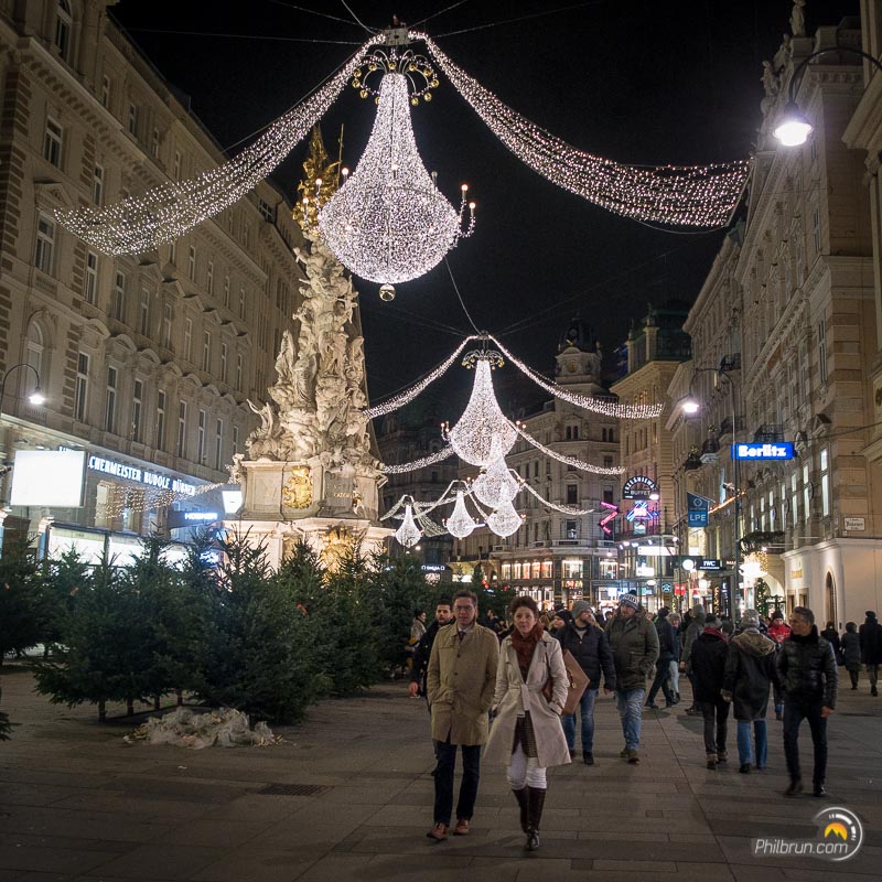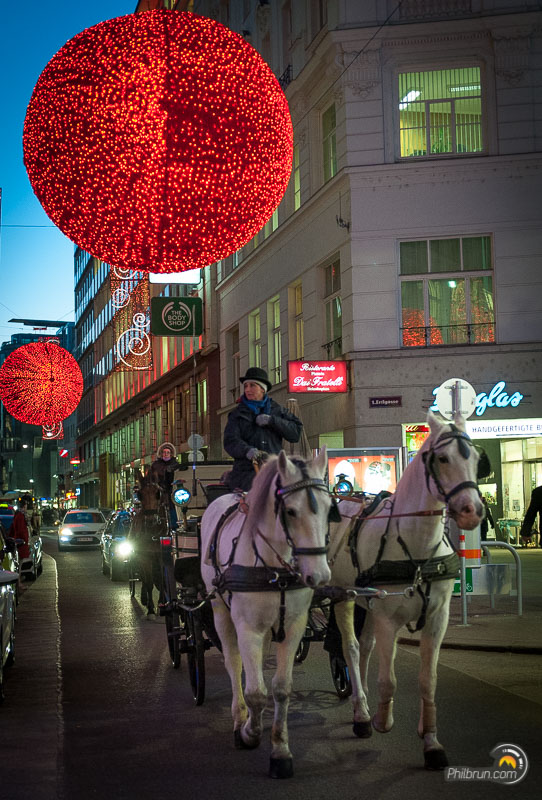 Nous avons particulièrement apprécié ce week-end à Vienne. Nous avons aimé l’ambiance de la ville et ce coté paisible qu’elle dégage. Pour la photo comme pour le reste, le respect des règles est de rigueur. Par exemple, il est fort mal vu de traverser en dehors de passages piétons ou pire quand le petit bonhomme est rouge ! S’il vous en prenait l’envie vous seriez rapidement ramené à la raison 😉. C’est pour dire qu’ici les indélicats ne sont pas les bienvenus. Outre cet aspect, tout y est agréable. La propreté générale de la ville et de ses marchés de noël est à l’image de la rigueur locale.