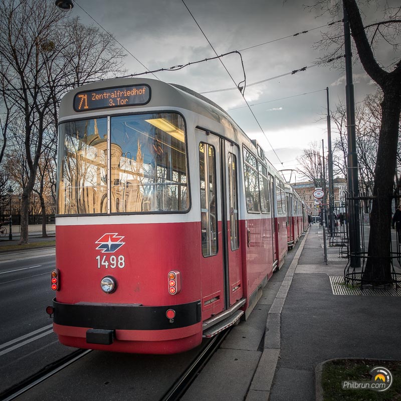 C’est un moyen de visite pratique et rapide. Environ une demi-heure pour faire ce tour. En effet, il permet de parcourir le boulevard le plus célèbre de Vienne, la Ringstraßeet qui passe devant la majeure partie des bâtiments historiques à visiter et des plus beaux marchés de noël de la ville de Vienne. Ce tour de tram coute 9€/pers. De plus, des écouteurs sont offerts pour se raccorder à l’audioguide en Français. Certes, cette visite peut se faire à pieds, mais elle permet néanmoins de les ménager, notamment en fin de journée 😜 car ils sont ici à Vienne tous les jours fortement sollicités !