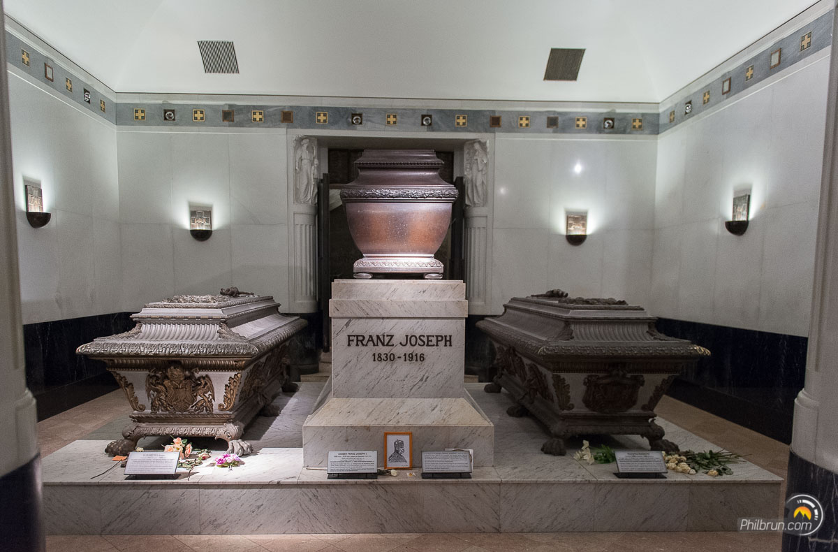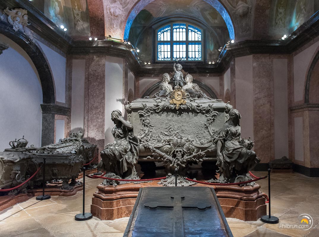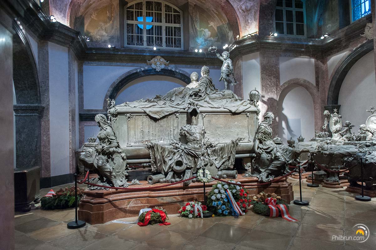 Voilà un endroit bien insolite. Une crypte en plein centre de Vienne où tous les grands personnages de l’histoire Autrichienne sont regroupés dans des cercueils en métaux. Une fois le guichet franchi, on descend par un long escalier rectiligne dans la nécropole des Habsbourg ! La visite est impressionnante tant les ornements de ces tombeaux sont fastueux ! On y trouve notamment en fin de visite le tombeau de Sissi, de son époux François-Josef et de leur fils. Mais ce ne sont pas les sépultures les plus impressionnantes !