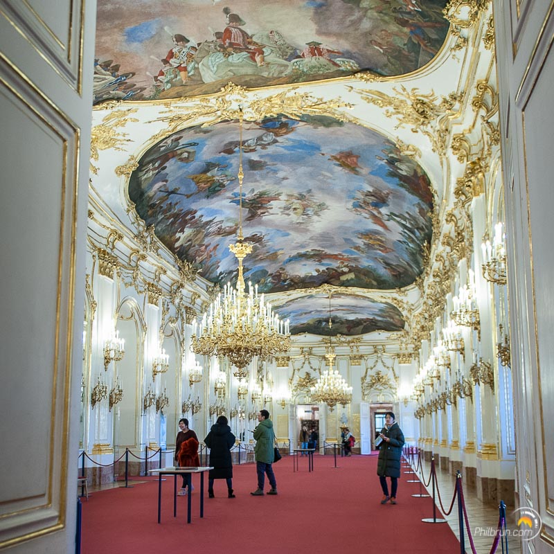 Attention, ici les photos sont interdites pendant la visite du château. Néanmoins, on peut pénétrer avec un appareil photo en bandoulière. Par contre, comme dans beaucoup de musés à Vienne, il faut déposer son sac à dos à l’entrée dans une consigne (gratuite).